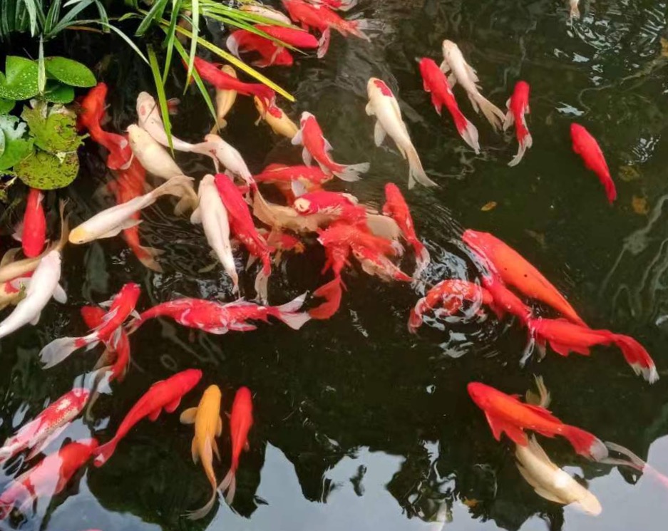 一弯荷池。一声"开饭了!”引来满池红的、黄的漂亮锦鲤新鲜鱼儿欢畅嬉戏。我每次走到这里,都会放慢脚步,注目观赏,流连忘返。