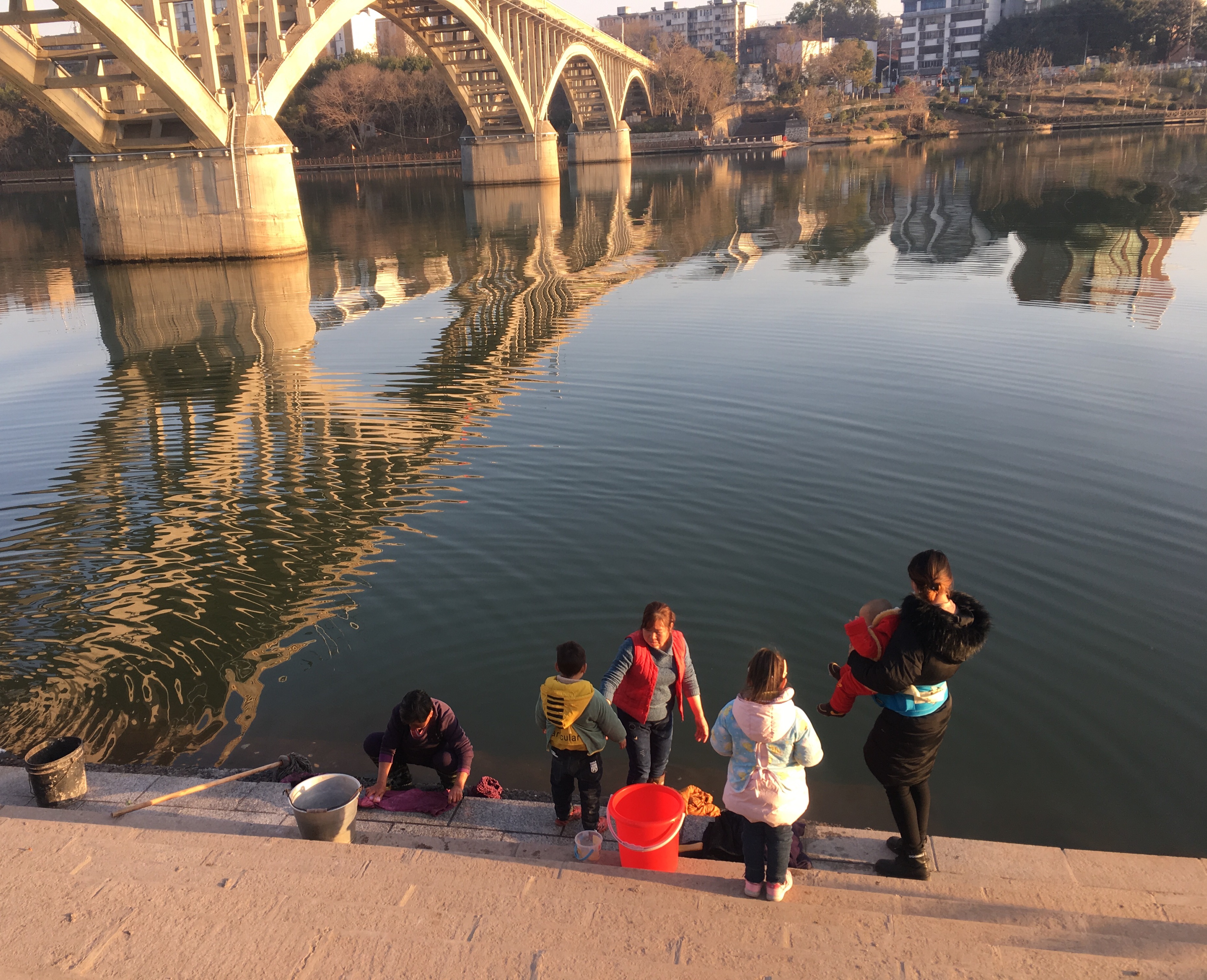 “终于快到原水西镇老街了,远远望见一排木瓦棚,多么熟悉呀!这排木棚打我小时后就有,记得走过木棚去长塘下村亲戚那儿拜年,讨红包、吃“满碗”(一种赣州乡间过年待客的习俗,进门三个鸡蛋,一大碗鸡腿、香肠面条),在池塘里捞鱼崽,乡间野道上捉虫子和追逐打闹,玩的好开心哪!那记忆至今尚在,都六十多年过去了,还那么念念不忘,回味无穷。如今又站在木棚跟前,引起我无限遐思……”