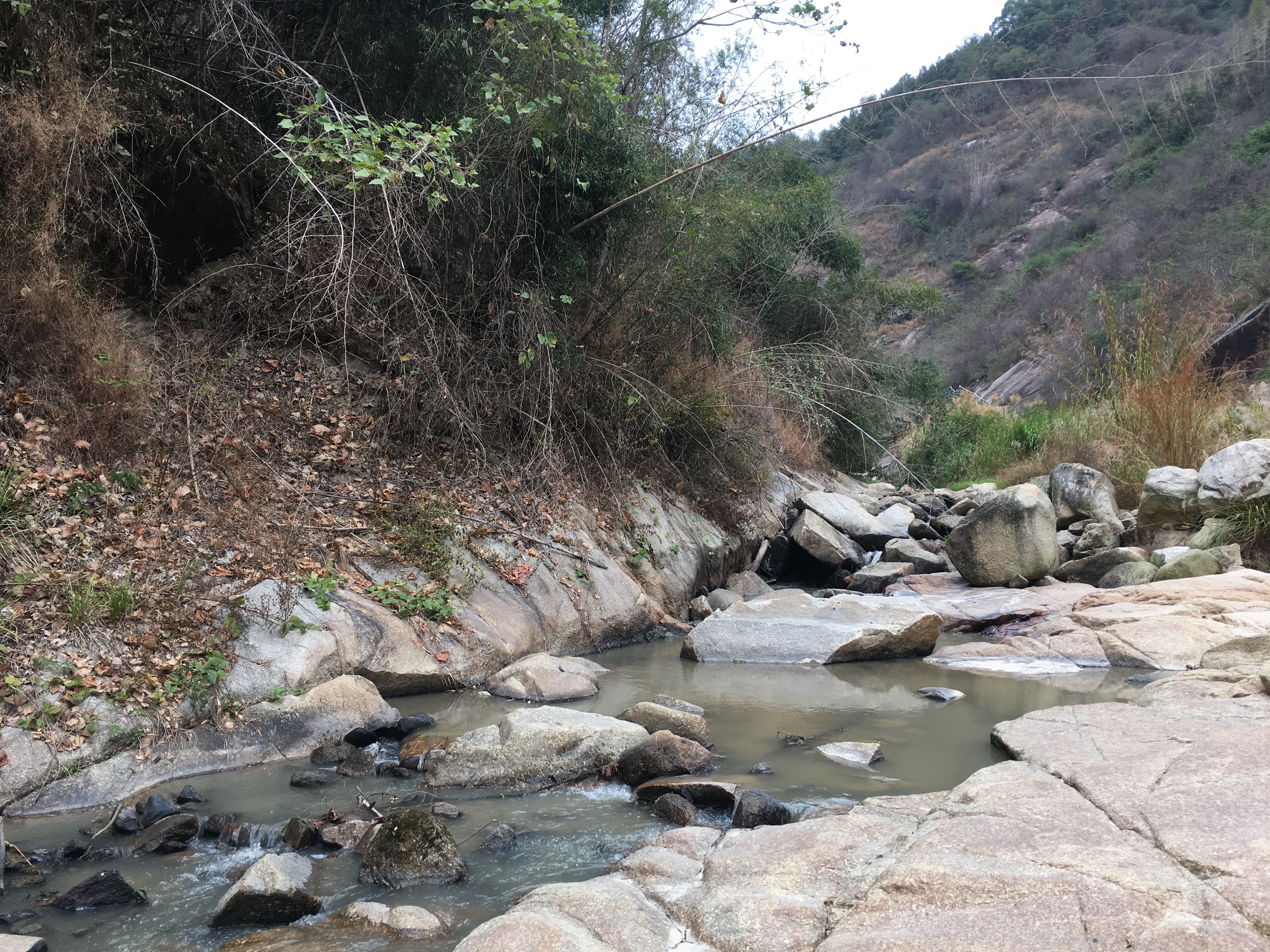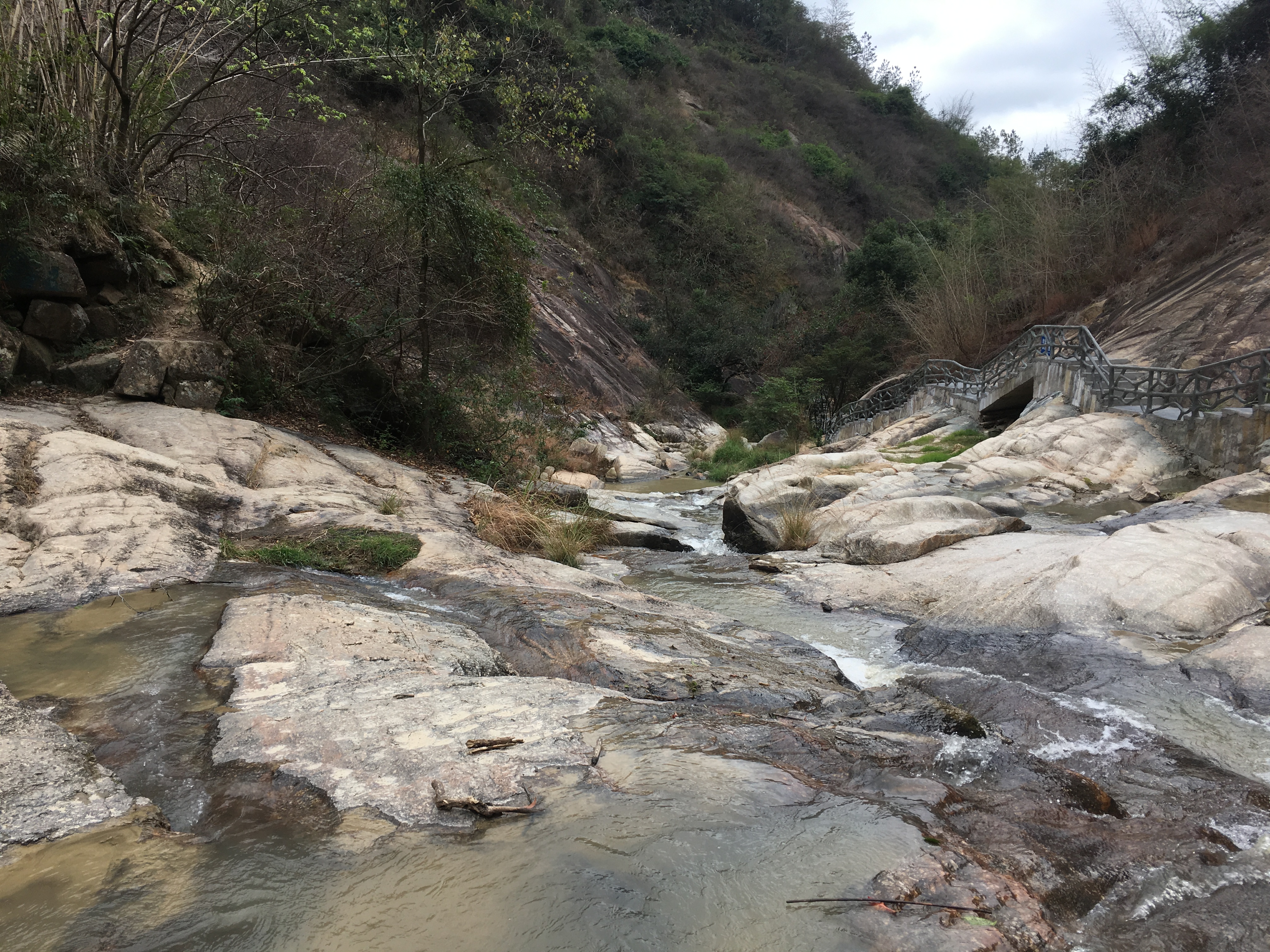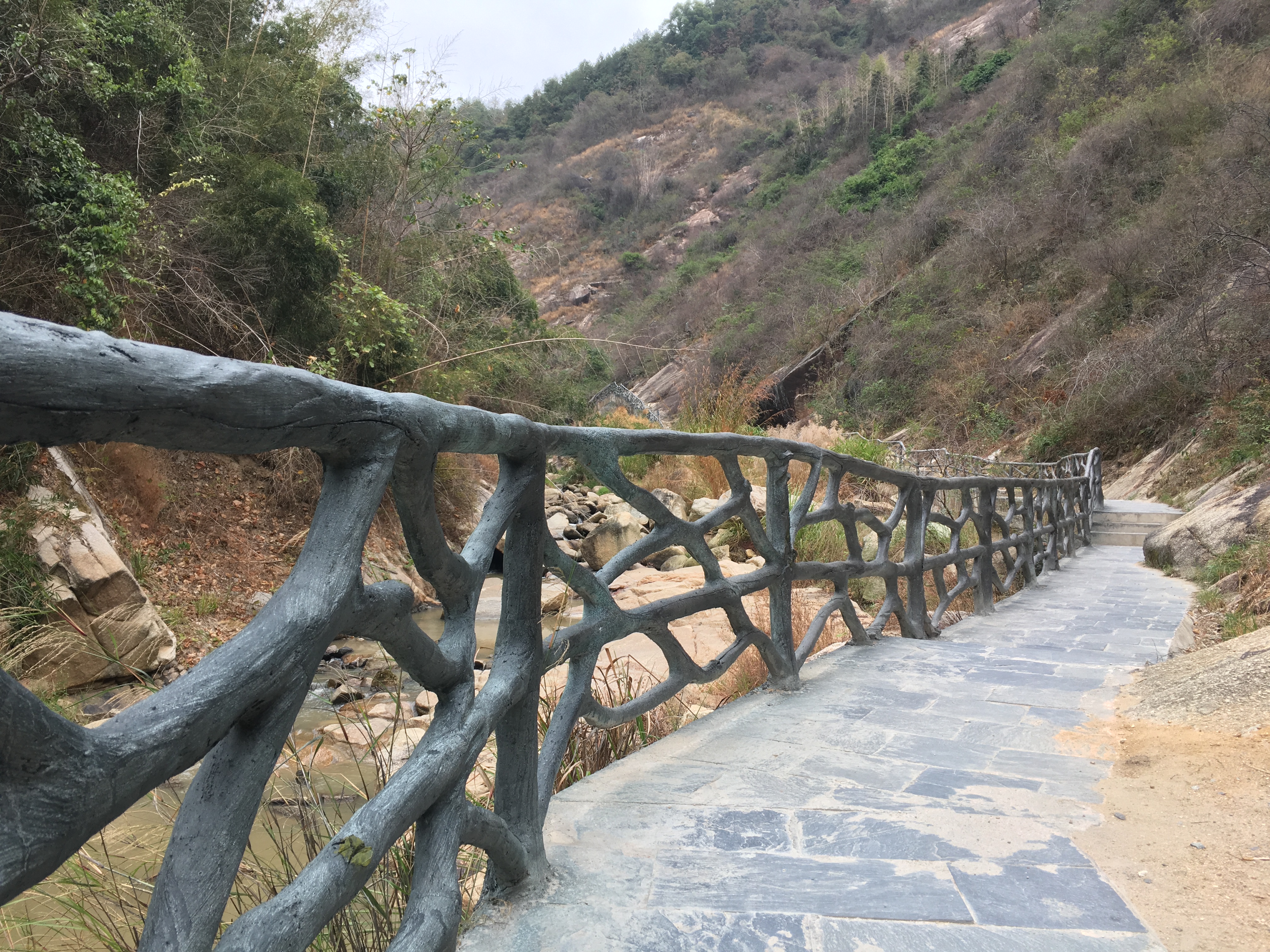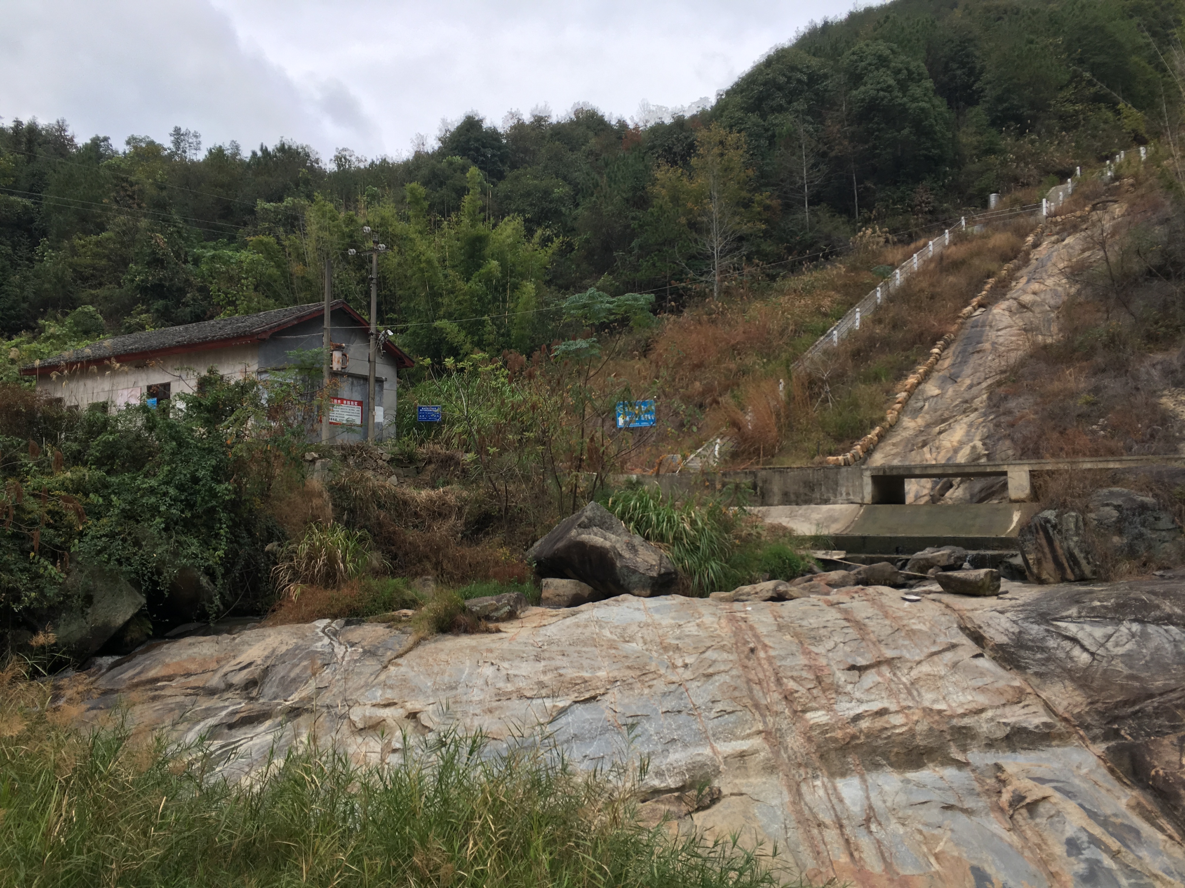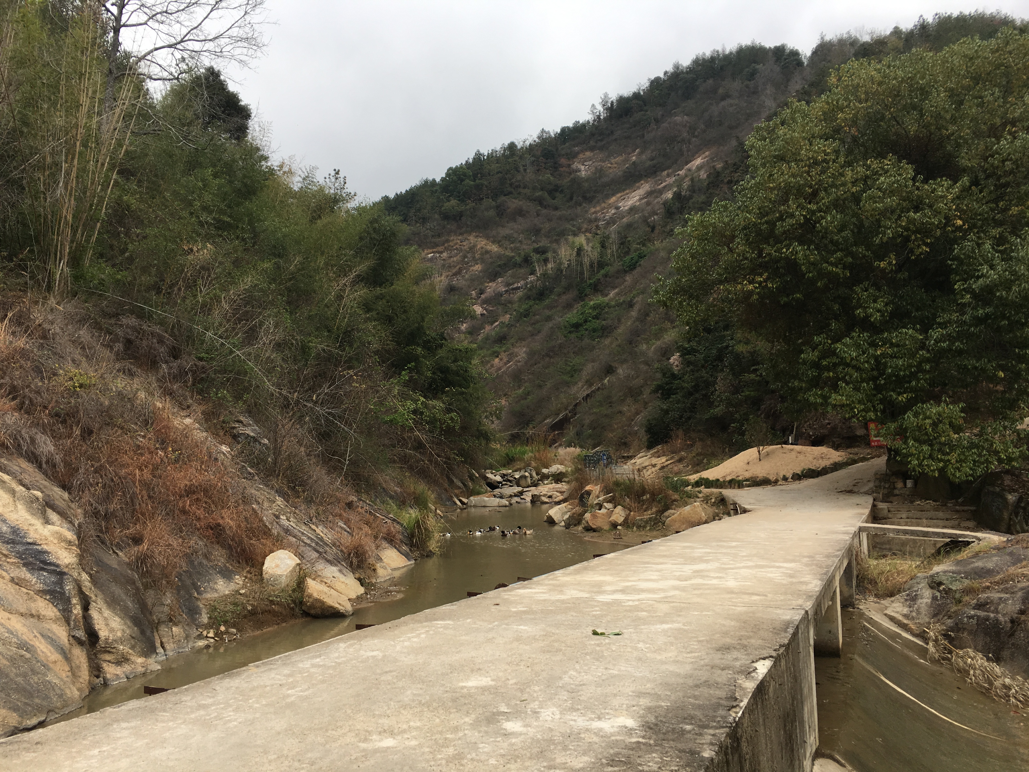 甫入龙潭,但见原水电站机房、引水管、水坝等一应设施仍存。人去房空,当年发电机轰鸣声却依稀可闻。2017年,为配合贫困农村精准扶贫,这里已辟为水西镇窑背村龙潭旅游扶贫基地,人行道及配套设施着手完善建设。龙潭谷约一公里许,沿山谷拾阶而上,曲㾿蜿蜒、溪流淙淙、峭壁对峙、林丛葳蕤,虽是冬季,仍听鸟声啁啾、草木吐青。