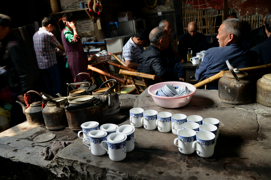 舅爷的茶馆坐拥在这南来北往路人的必经之地,成为乡友过客的歇脚驿站、纳凉茶亭,有的沏上一壶清茶独自酌饮,有的对阵楚河汉界跳马将军,有的喜数今天的买卖收益,有的调侃所见的趣闻轶事。