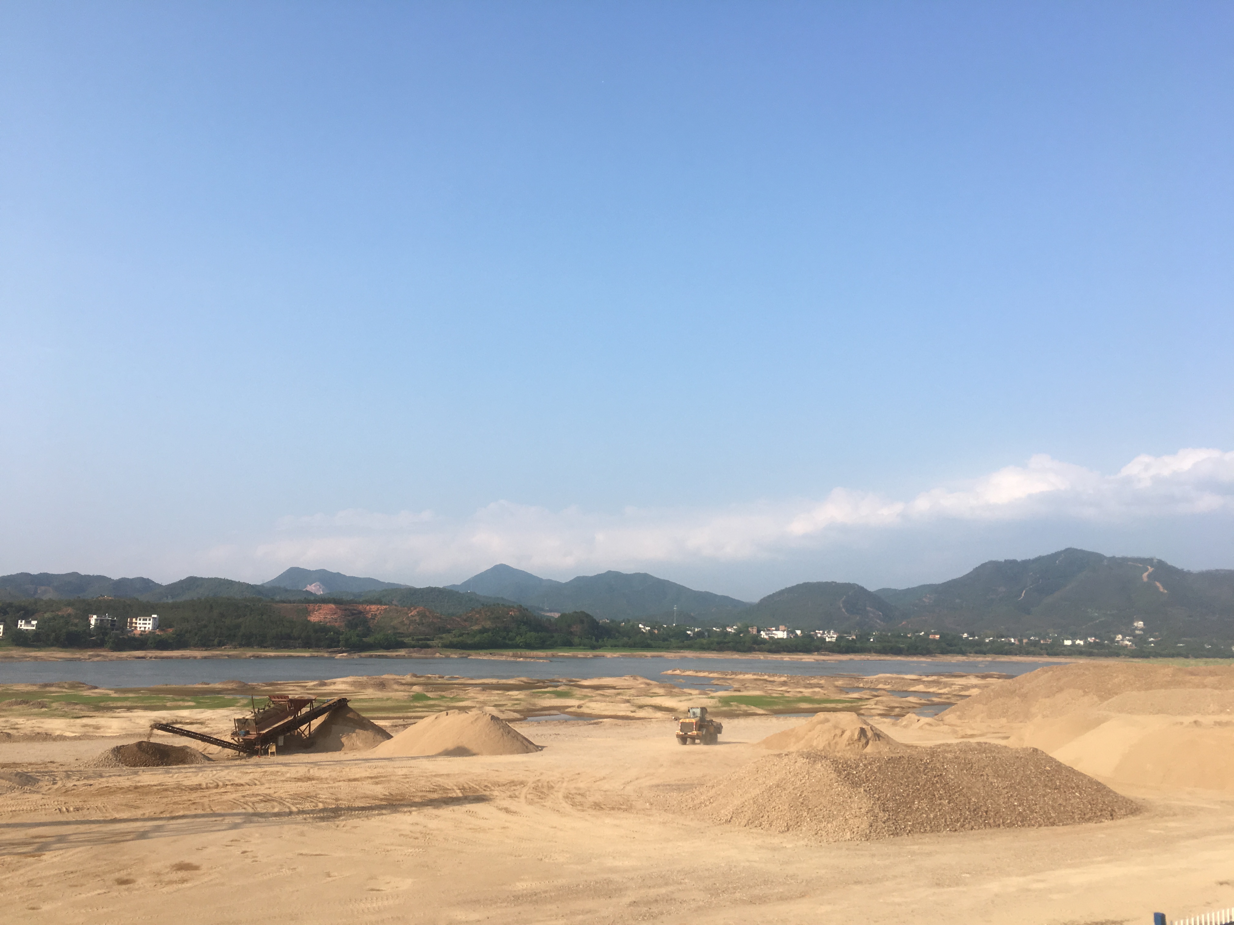 一般情形下,吊排石的北边是一片茫茫的江水,东西南边则是绵延不断的大沙坝。沙坝的沙质非常好,颜色雪白雪白的,没有一点杂质。沙粒一颗颗晶莹剔透,非常匀均,沙粒在阳光的照射下闪亮着一种耀眼的光泽。这条沙坝不仅平坦,而且冗长,东起茫埠,西到白田庙前,全程足有四五里路之长。这么平坦而且宽阔的大沙坝在整条赣江河里都是少见的。