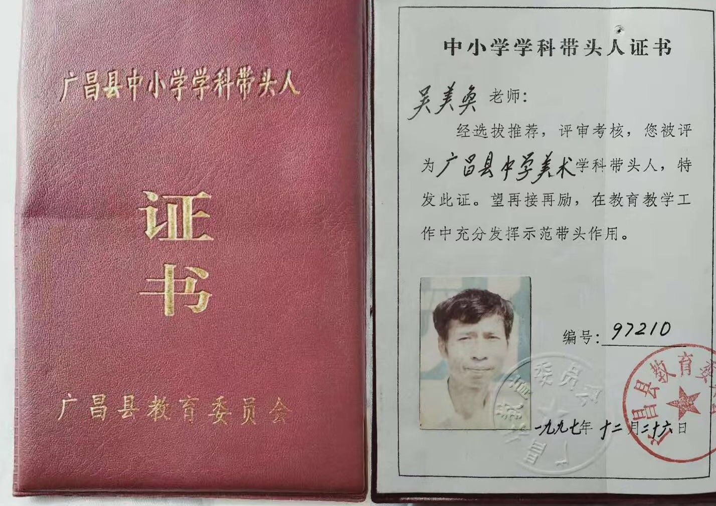▲学科带头人证书