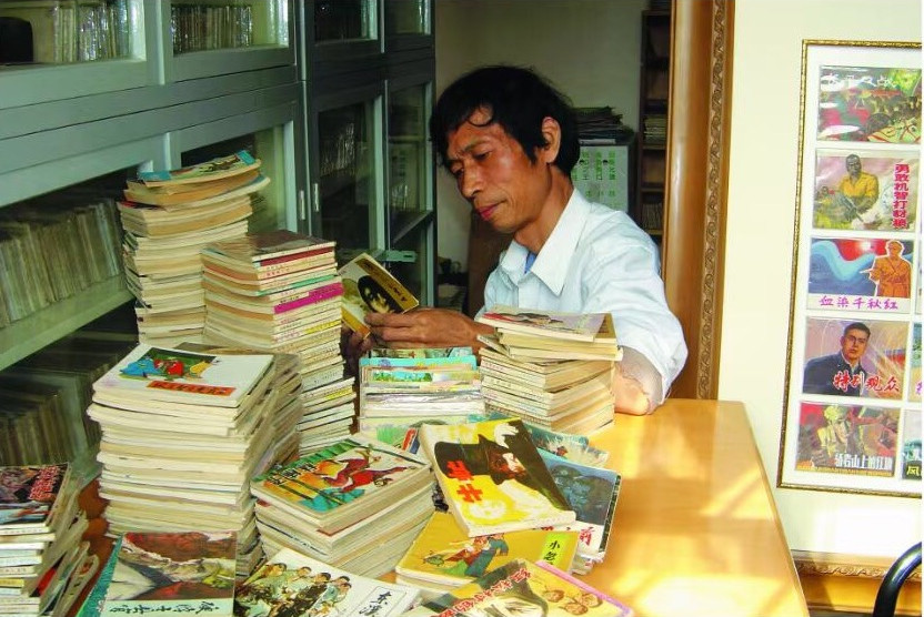 吴老师在收藏室能坐上几个小时,这几个小时是在黑灯瞎火中度过的。他给出的理由是光线会使他的连环画发黄,不知道这个理由成不成立。他甚至还说,收藏室内是不能放屁的,放屁会损坏连环画的书钉,这在大家听来,就觉着显得有点荒唐了。