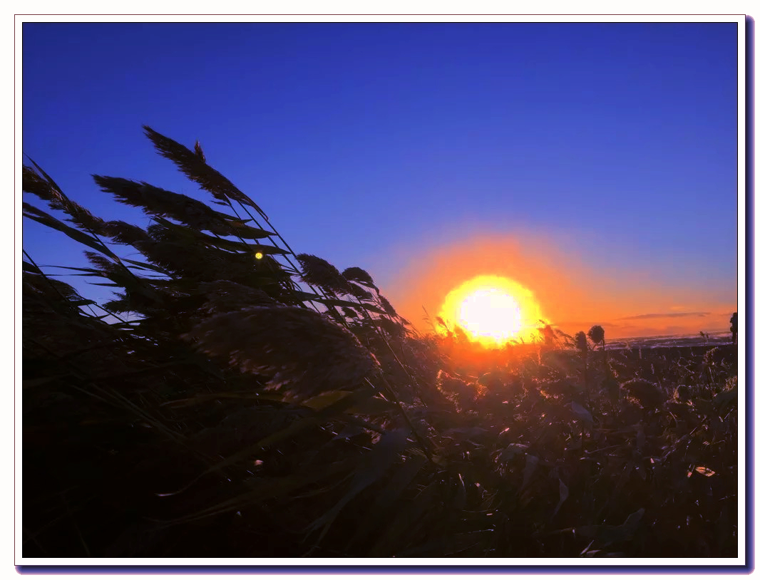 波浪也越来越大,一层又一层不断地涌向岸边,涨潮了!岸边原本挺拔的一排小杨树被狂风吹得弯下了腰,纤细的芦苇丛更是几乎已是完全匍匐在地……火红的太阳在湖面投下的长长身影,被翻涌的波浪给牵扯得像是要升起的火焰。乌伦古湖,你这是在狂欢吗?看这气势,你是要跟大海相媲美吗?