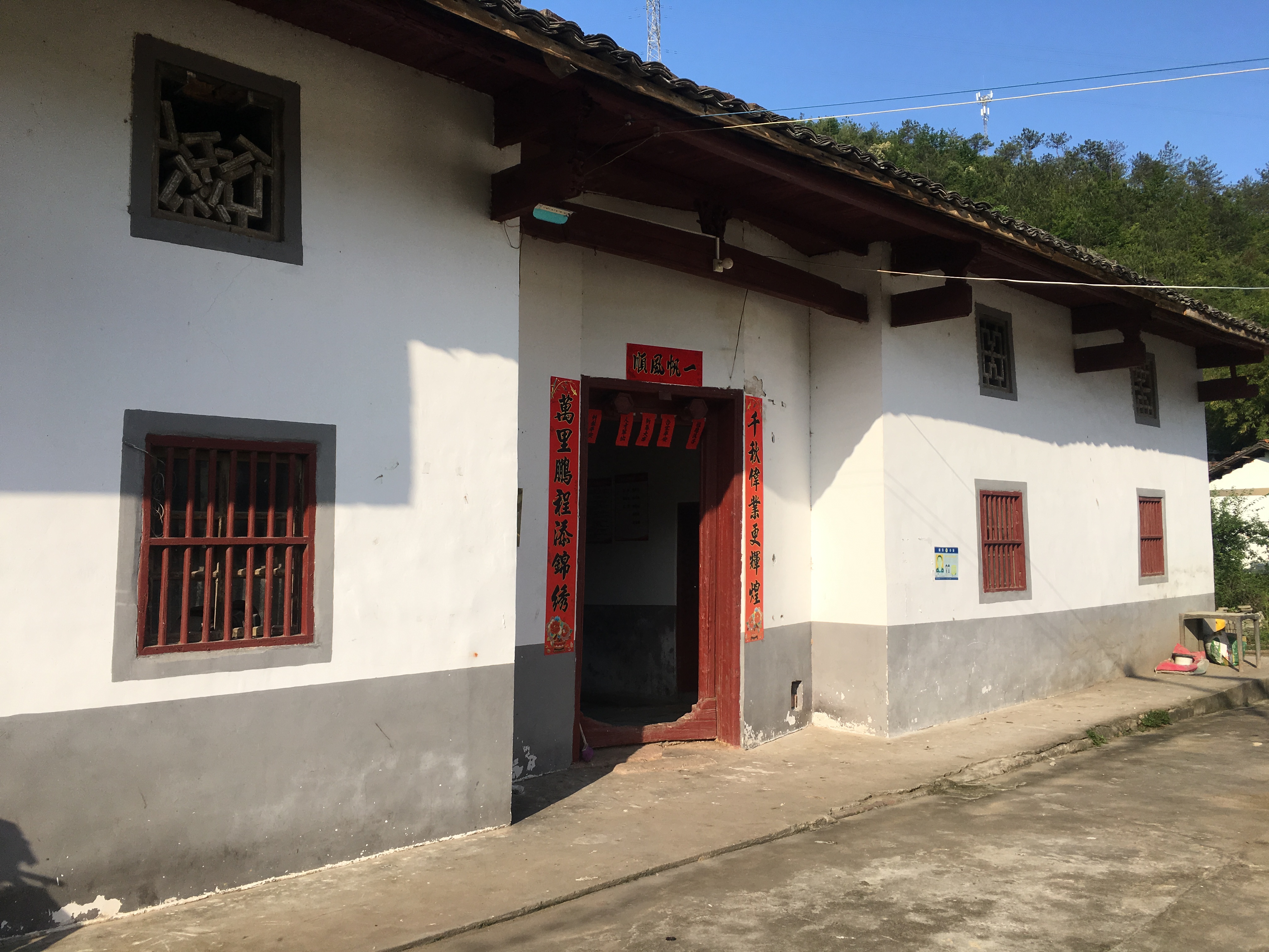 进得组里,只见一座座民居依山而建,错落有致,几间粉刷一新的红顶楼房在青山绿水的点缀下如杜鹃盛开,老屋却散发着古朴的香味。三姓祠虽然不大,但祠堂功能齐全。该堂是由黄、邱、黎三姓所建,始建年代已记不清了,2015年重新修缮,由三姓人共同出资。据说修缮时曾挖出银元。又传原隔壁人家建房,曾挖出一坛银元。这些说法仿佛在向世人述说三姓祠昔日的辉煌。