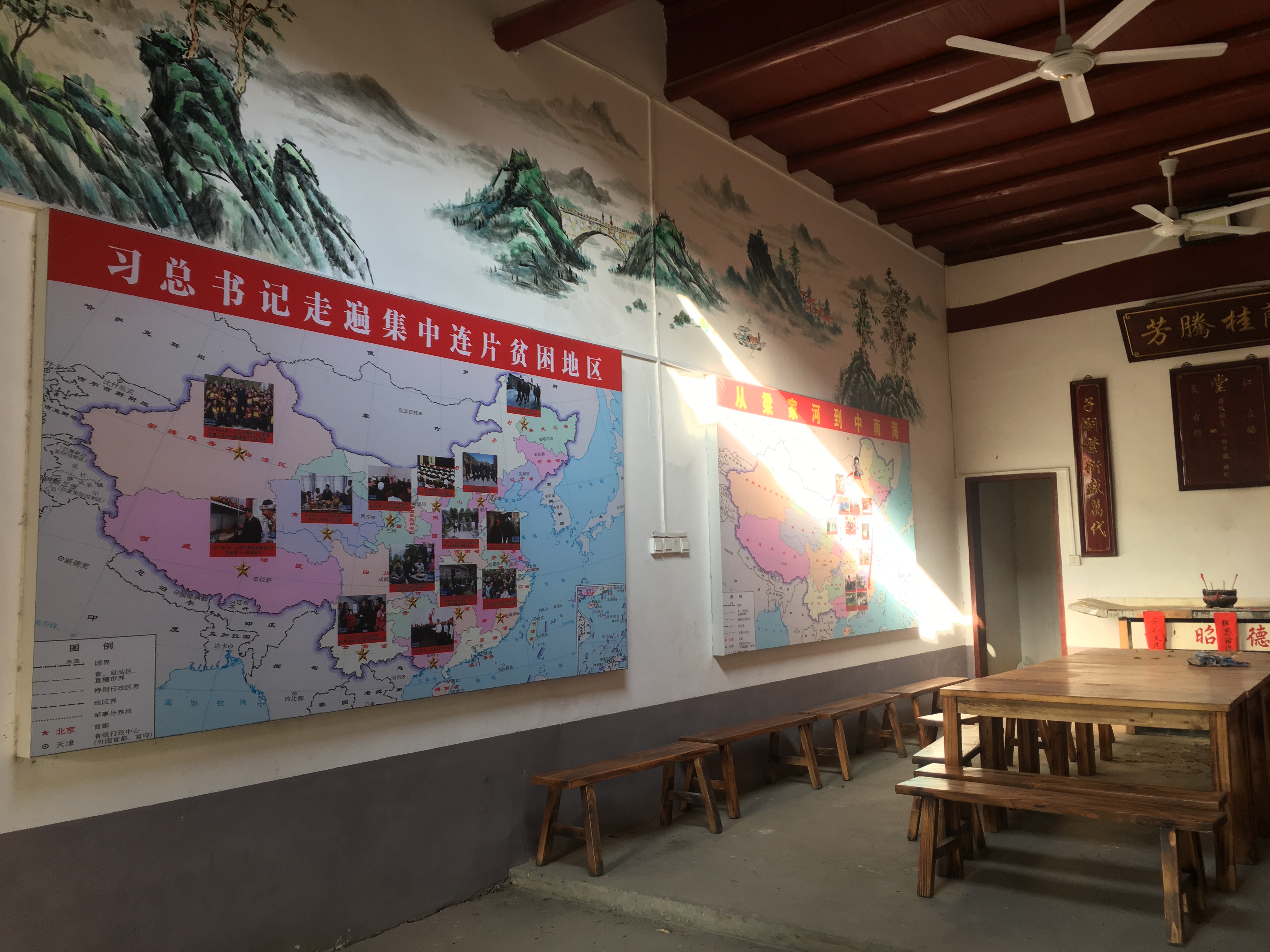 令人没想到的是,黄老前辈教的是美术学科。说到兴奋处,黄老还向我们展示了他画在自家屋檐、屋粱、壁橱柜上的美术作品。1980年黄老病退回乡,两个儿子子承父业,当上了教师,一个顶他的编制,一个属民办教师(后考入赣州师范民办教师班转正)。黄老在大塘头盖起了两幢高楼,子孙满堂,晚年的生活过得很幸福。