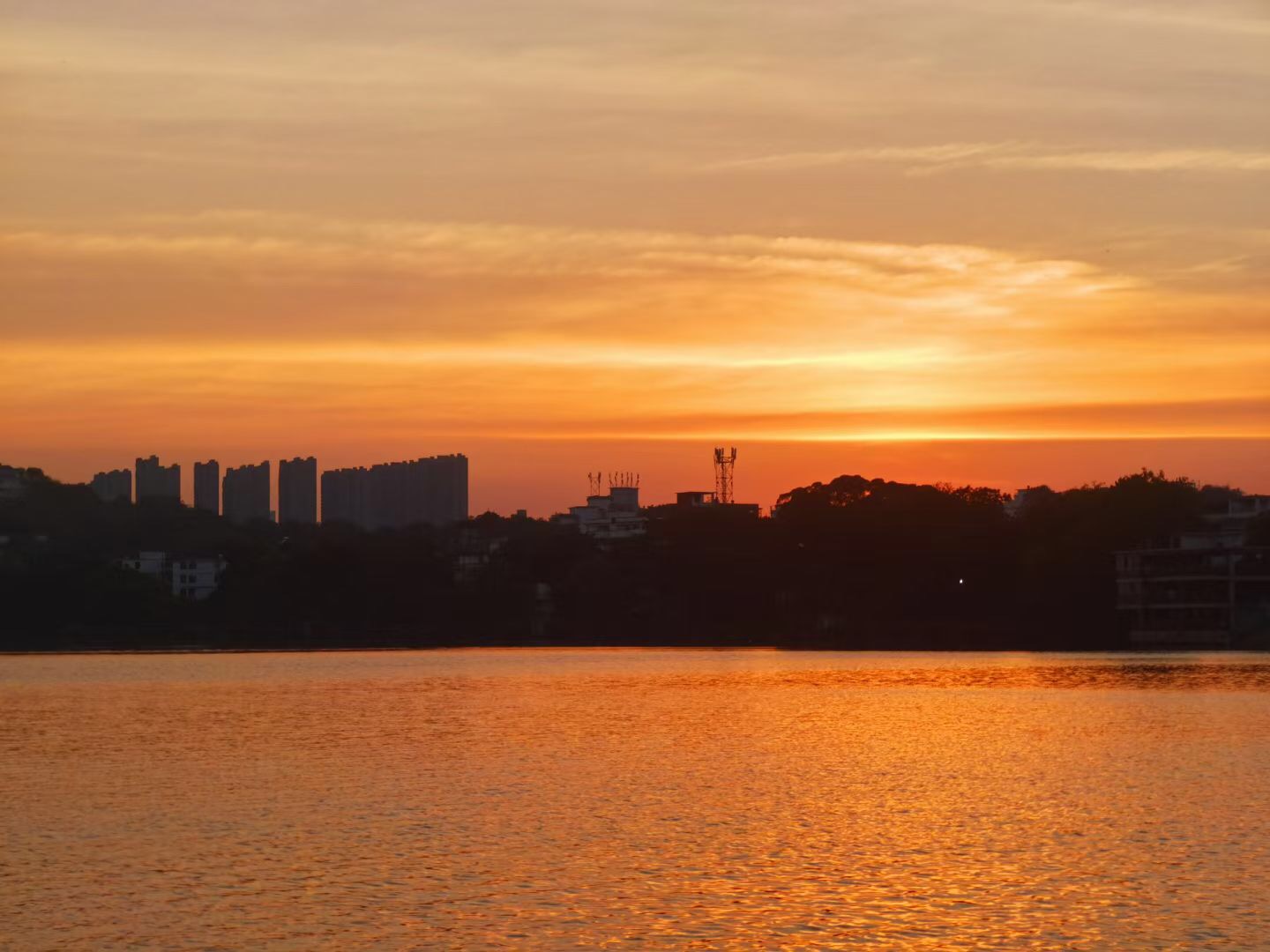 晚霞还在湖面上闪光