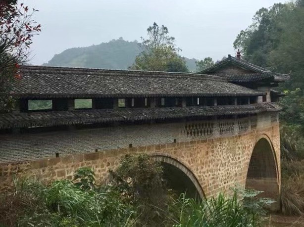 我走进廊屋,发现桥楼已有蚀朽,驿道的卵石也显得残缺不全。岁月的长河中,有多少掮客在这里停留休憩过,又有多少香客在桥中间的神庙前虔诚地烧香祭拜过,还有多少路人聆听过义士余凤岐乞讨银子一心修桥的故事?