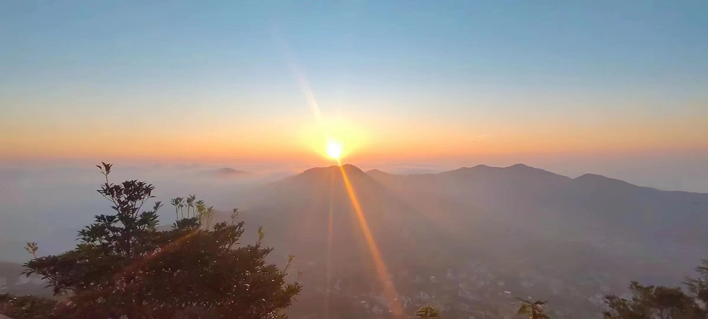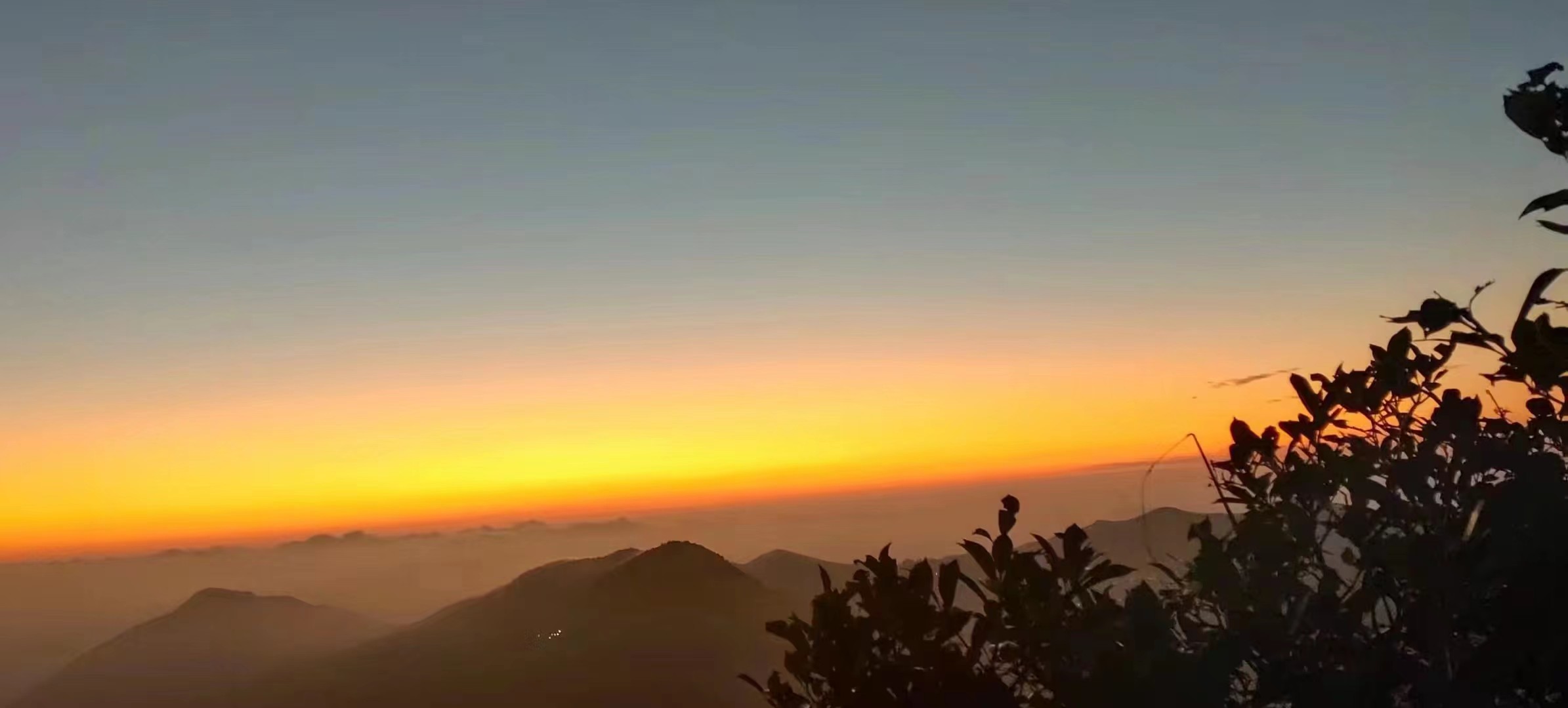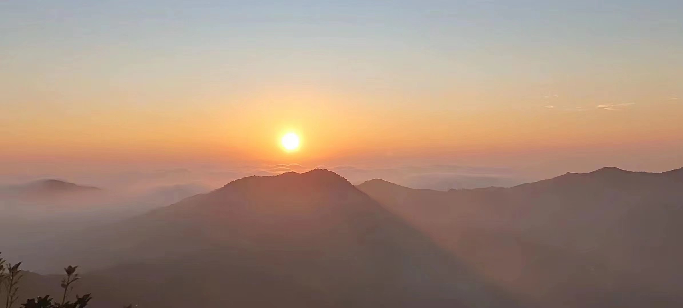 我还沉醉在幸福与遐思之中,旁人已经惊呼:“太阳出来了!”顿时,大家都屏住呼吸、鸦雀无声等待与观望,那从大山嘴里喷出来的火球,先是一个小点慢慢的往上升,这会儿又像是从鸡蛋里破壳而出的蛋黄,随着时间的推移,变得越来越大,一如天上落入凡间的夜明珠,瞬间照破山河!