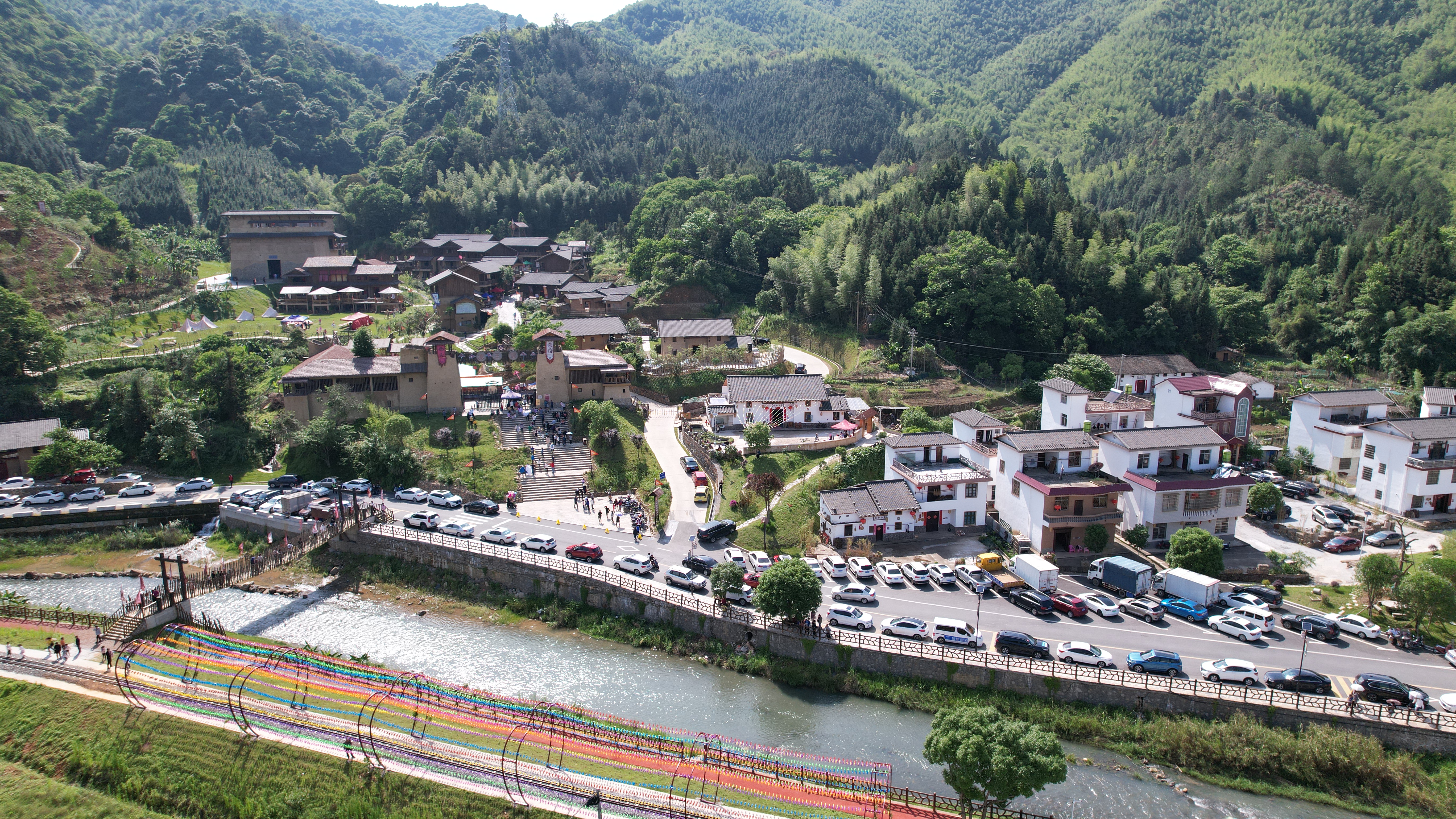 村企共建,振兴在即。左溪阳明寨项目明确景区的投资主体为企业,核心景区周边的经营性业态由企业出资建设,农户负责场地和劳力入股,按照业态收益的不同共享分红,既解决了企业“人力”问题,又解决农户“资金”和“客源”问题。同时,景区从工程建设到部分业态的运营,除了必须的管理人才和技术工人外,普通劳力一直按照市场行情在本地解决。企业与村里建立联合党支部,合理规划企业与农户业态重点,实现打造重点不同、企农共同导流共享红利,从而有力保障良好企农关系的建立。