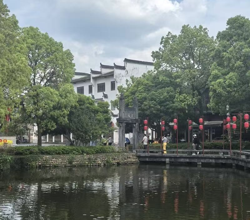 我一眼便望见远处那片白墙黛瓦的徽派老建筑,飞檐翘角格外惹眼,立马扭头冲着刘兵喊:“快看快看,这就是江湾!咱们这趟婺源行的重头戏可算到了!这地方不光风水好,文脉更是深厚,历史上出了不少文臣雅士,今天逛这一趟,绝对值回票价!”